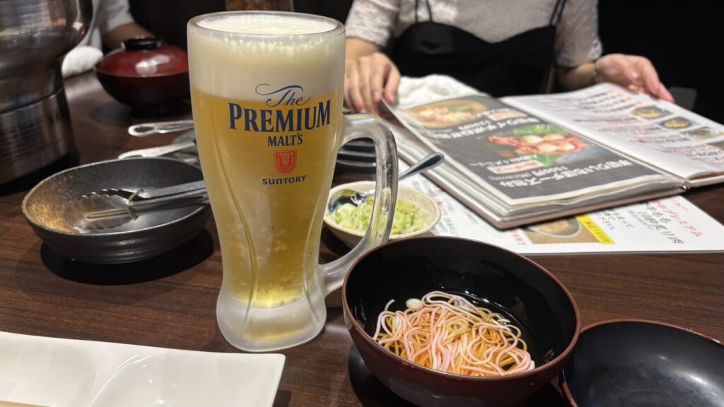 夜なのでしっかり生ビールを頂きましょう。