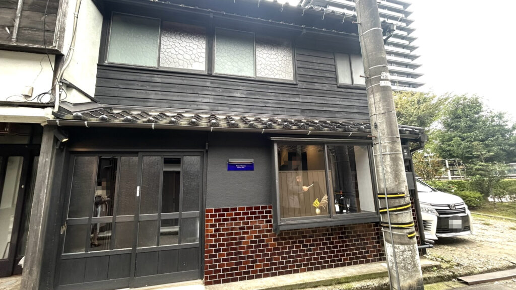 古民家というには昭和めいた外装を黒く塗り直して使っている様子。