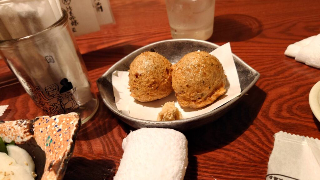 たこのすり身揚げはたこ焼きのような形。