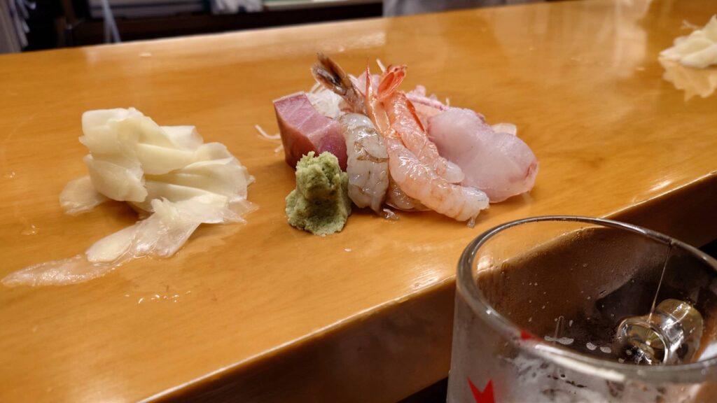 その後注文した刺身は1品ずつ眼の前に置かれて盛り合わせに。