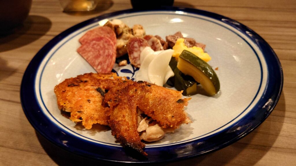 手前の手羽先は骨が抜いてあってクリスピーで美味しかったです。