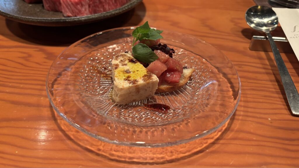 香箱蟹のテリーヌとまぐろのブルスケッタ。