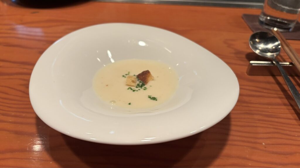 百合根のポタージュは優しい味わいで、百合根の甘さが素晴らしい!
