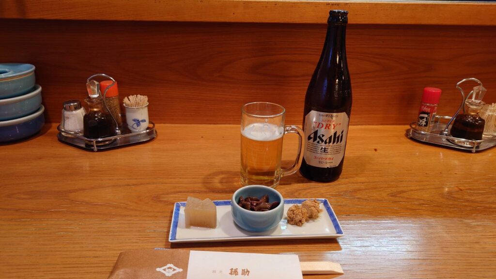 誰もいなかったので楽しいマスターとのトークで瓶ビールは4本飲むことに笑