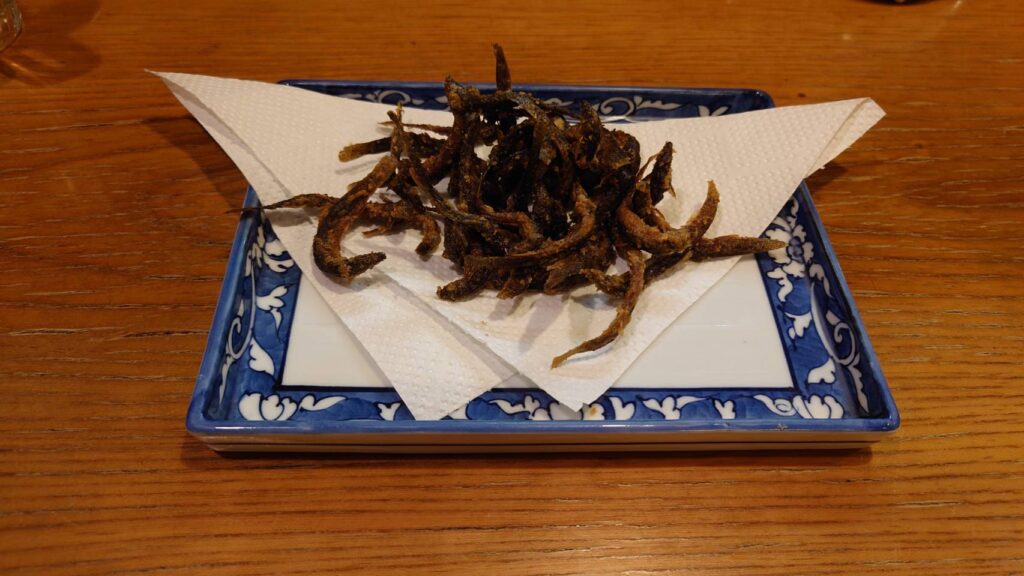 お通しは黒板メニューから少しずつ盛ってもらえました。