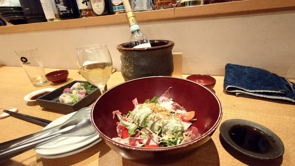 サラダも塩加減がちょうどよく、おつまみとしても食べられる絶妙なバランス。