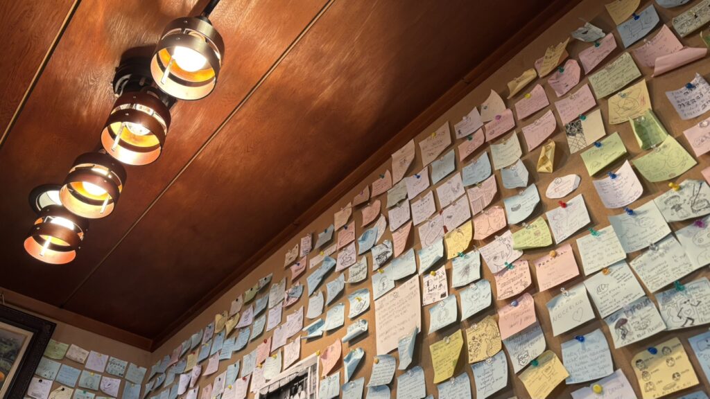 店内には来店された方からのメッセージが処狭しと。