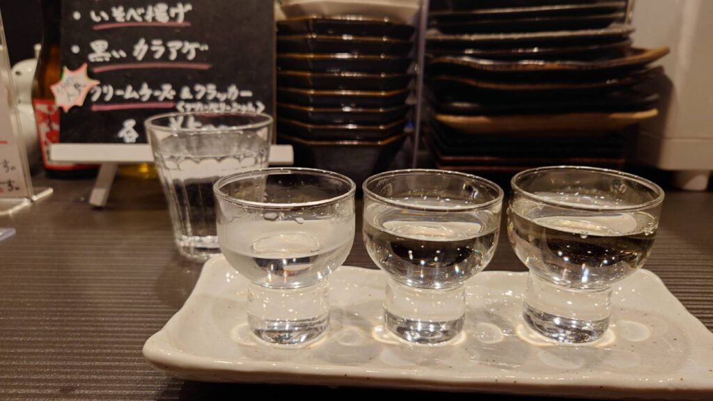 60mlを3つ、空いたら違うお酒を1杯ずつ注ぎ足してくれます。