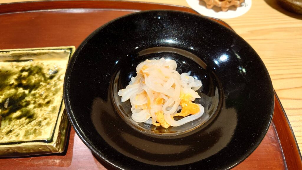 こちらはホタルイカと数の子の黄身酢がけ。