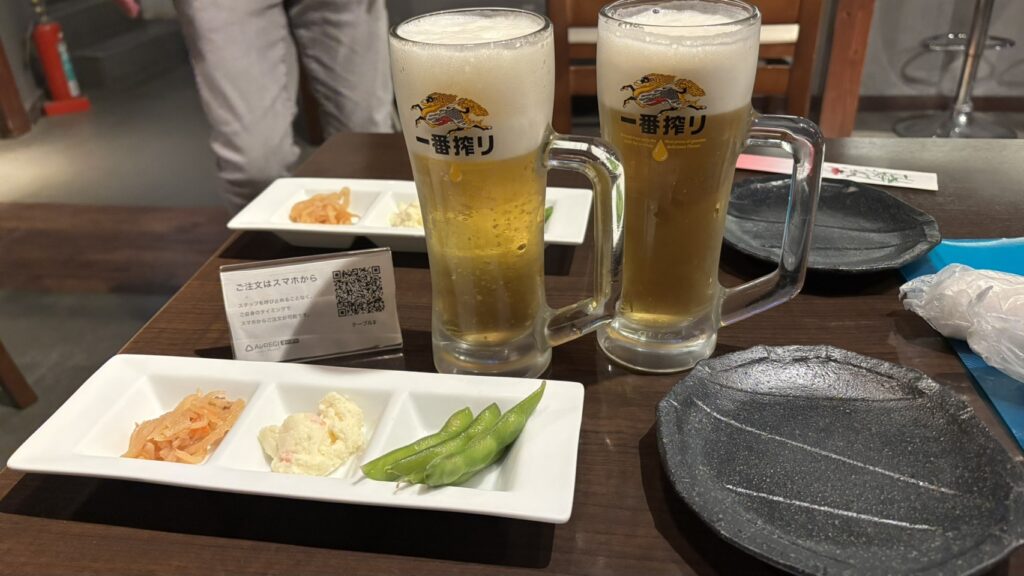 エビマヨなどの居酒屋料理をつまみながらビールが秒速でなくなります。