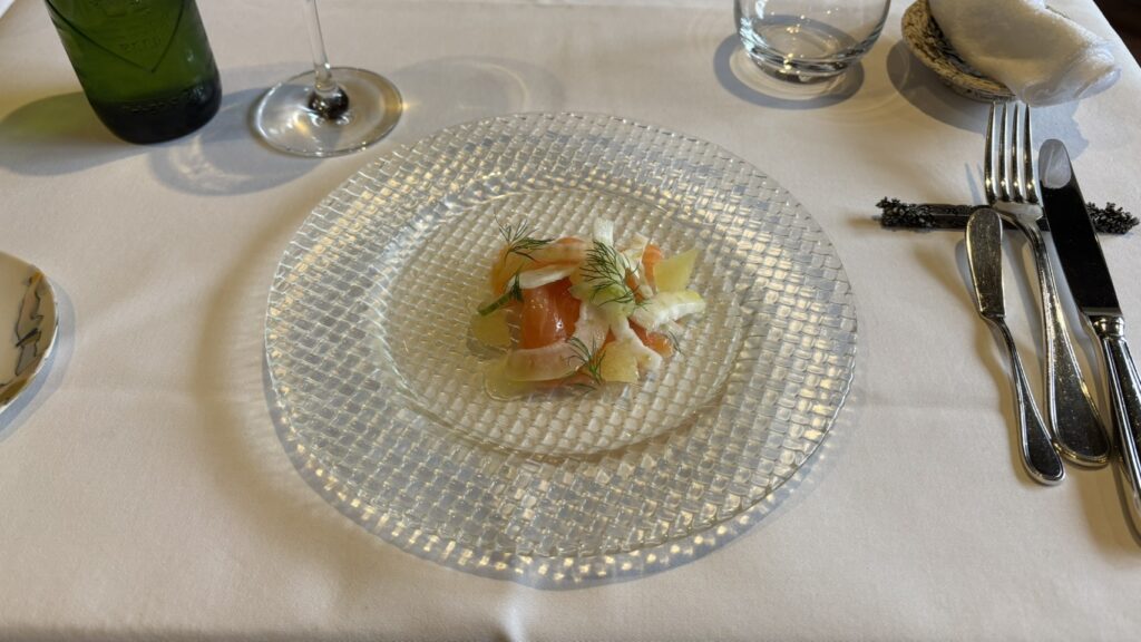 前菜はスモークサーモン。