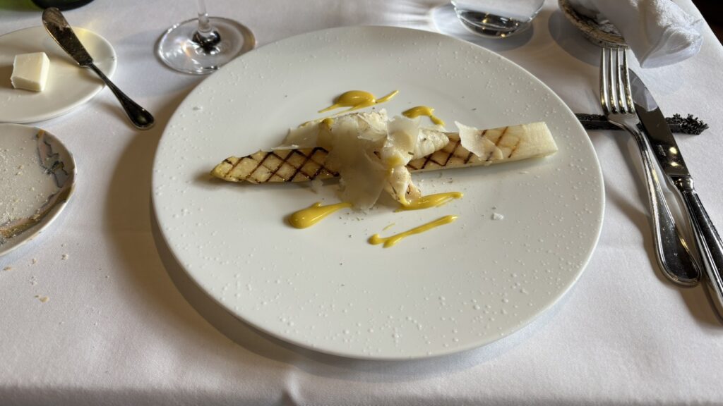 ホワイトアスパラのグリルはシンプルながらチーズの風味でコクが増します。